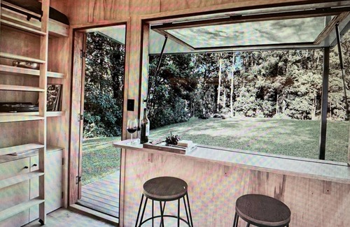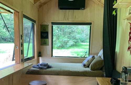 Our Tiny house sits on a ridge at the top of one of our paddocks, positioned to take in spectacular sunrises and sunsets. It offers sustainable living including off grid solar, water free composting toilet and fresh rainwater rain tank. Our home is around 300 metres away and filtered by trees, we are on hand if you need anything but far enough away to offer complete privacy.
