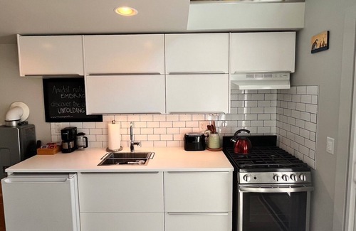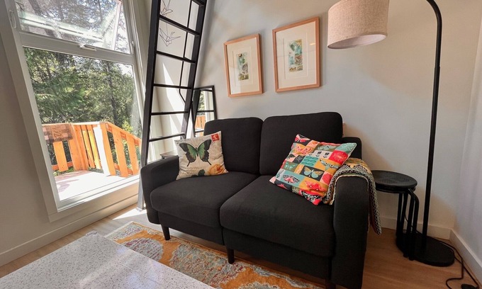 Wake up to serene forest views from the loft bedroom, sip your morning coffee or tea on the private deck, and let the stillness of nature restore you. Relax in the clawfoot tub (in the nearby bathhouse), detox in our barrel sauna, or explore our magical little forest and permaculture farm (enjoy fresh seasonal produce) on the lower property.