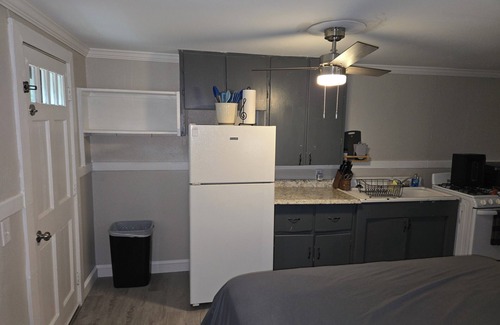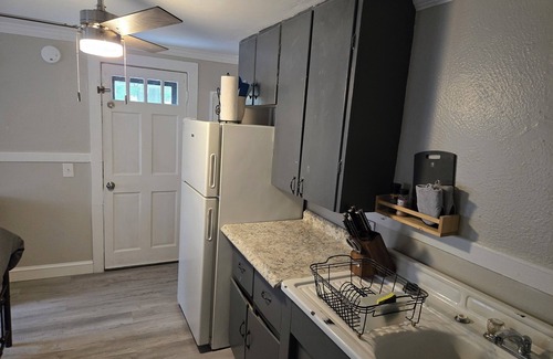 Unique place to stay with no neighbors above or below. One bed with full kitchen and bath. Small work or dining area as well with dedicated internet. This is a budget property. Bathroom needs updating that will occur at the end of 2025. Doorbell camera along with one facing parking area.