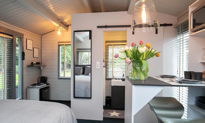 Offering a garden, Tiny House Boatshed offers accommodations in Heemstede. The property is around 7 miles from Keukenhof, 17 miles from Anne Frank House, and 18 miles from Vondelpark. There's a sun terrace and guests have access to free Wifi, free private parking, and an electric vehicle charging station. The air-conditioned bed and breakfast consists of 1 separate bedroom, 1 bathroom with a hair dryer and free toiletries, and a living room. A private entrance leads guests into the bed and breakfast, where they can enjoy some wine or champagne and fruit. The property has an outdoor dining area. À la carte and continental breakfast options with warm dishes, fruit, and juice are available. If you like to discover the area, windsurfing, cycling and hiking are possible in the surroundings and the bed and breakfast can arrange a bicycle rental service. RAI Amsterdam is 18 miles from Tiny House Boatshed, while Van Gogh Museum is 18 miles from the property. Schiphol Airport is 6.2 miles away.