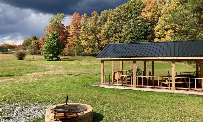 We offer a beautiful outdoor communal pavilion. Each accommodation comes with its own private fire-pit, perfect for relaxation, cooking your favorites.