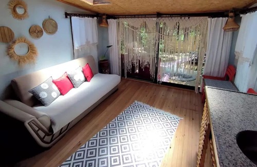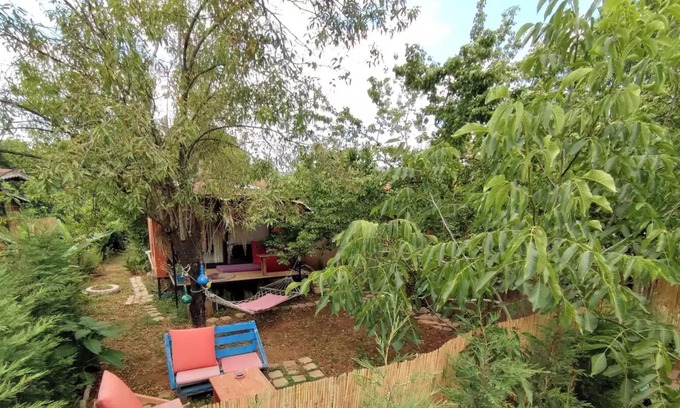 With a private entrance to the room, the tiny house has a shower and toilet, kitchen is tiny . There are two beds, (one double size, one single size) where 3 people can accommodate comfortably. You can check the details in the photos. The garden is small but very rich in terms of flowers, vegetables, and...