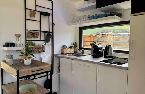 Thoughtfully designed, Orion combines the ingenuity of a Tiny House with the comfort of a cosy, fully equipped home. Flooded with natural light through large windows, it opens onto a private terrace with a wood-fired hot tub - perfect for relaxing outdoors, in every season.