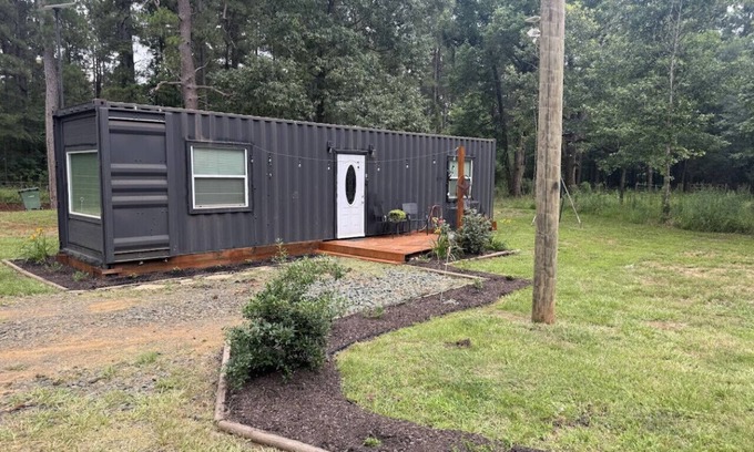 Escape to nature in our 1 bed, 1 bath tiny home near Nacogdoches. Just 9 miles from downtown and 11 miles from the SFA campus. Nestled in seclusion, relish total privacy amid nature and wildlife. The road to Nacogdoches is mainly paved except for the first mile, where you travel down a gravel county road, winding through the heart of the piney woods. Sleeps 4 with the full size futon in the den.