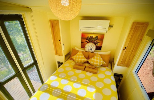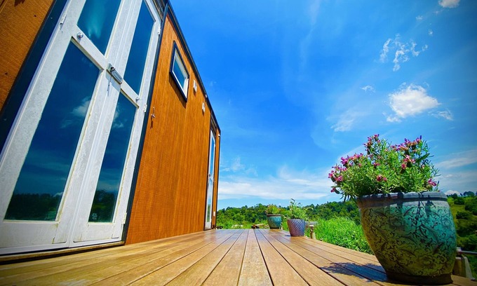 Discover the charm of minimalist off-grid Tiny House living in a breathtaking scenic setting. Our Tiny House shares a pad with two other Tiny Houses, where we reside, and your accommodation is tucked away on our Garden Pad, offering panoramic hinterland views. Many guests have described it as a very private and relaxing spot.