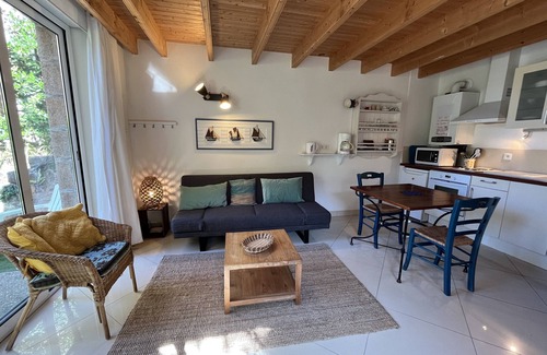 (Text automatically translated) Regardless of the great battisse 19th century, this stone house offers a small sea view and is ideally located opposite the beach and across the archipelago of seven islands. All modern conveniences in the charm of the old.