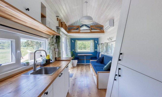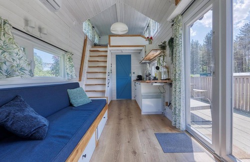 The Tiny House has an open-plan design with smart sleeping arrangements: