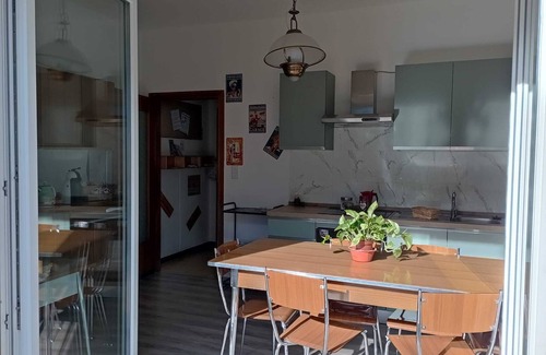 Welcome to our elegant and spacious apartment in Tirano, located in a central and quiet location. The apartment can accommodate up to 10 people and has 3 bedrooms, 2 bathrooms, heating, free Wi-Fi, flat-screen TV, fully equipped kitchen, washing machine and dryer, and a private garden with table, chairs and barbecue.