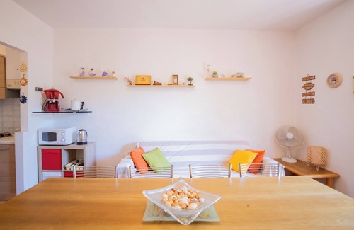 The apartment is accessed by private pedestrian driveway, arriving at the large garden with table, umbrella and barbecue, for carefree dinners and cool from the summer heat. Going up the stairs you reach the terrace and the entrance to the apartment: a large room where you can spend convivial moments, a kitchenette with everything you need for even longer stays. The two double bedrooms are spacious, one with a bunk bed, so as to accommodate even the largest families and groups of friends.