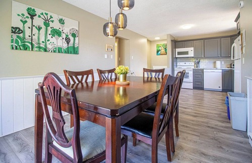 The upper level also features three queen bedrooms and another full bathroom, offering plenty of space for everyone to unpack and relax. Outside, enjoy the covered patio with a BBQ, expansive yard, and firepit, perfect for evenings under the stars. With no close neighbours thanks to the adjacent former golf course, you’ll enjoy peace, privacy, and the natural beauty of Tobermory.
