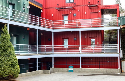 Guest access is by keypad entry, with access to entire apartment. The condo building is right on Tofino's bustling harbour.