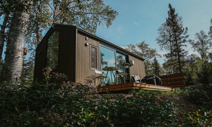 Nestled above Lake Superior, Oberg cabin is 1 of 5 stunning, custom built cabins which gazes over a gorgeous pine, cedar and birch forest & is perched at the top of our land w/ a trickling stream nearby & closest walk to the parking area. Oberg is not a pet friendly cabin.