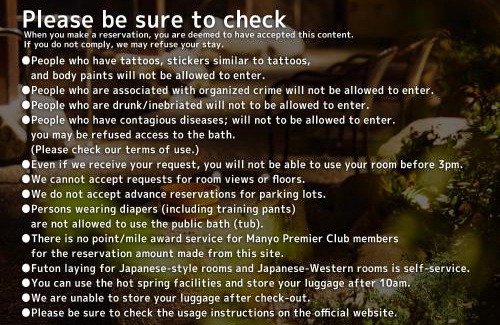 Based on the information reported by the owner or manager, details for the cancellation policy for the Tokyo Toyosu Manyo Club are as follows: Free cancellation Guests are cautioned that the cancellation policy may differ based on seasonality, availability, or current travel restrictions. Guests should also be aware that this policy may be subject to change and should be confirmed prior to booking. More details may be available on this page in the property description. However, early check-in or late check-out can sometimes be negotiated between the guest and the owner or the manager of this property.