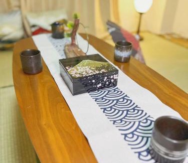 BathroomShower, Bathtub, Hairdryer, Free toiletries, Toilet, Private Bathroom, Bidet, Towels, Toilet paperGeneralAir conditioning, Heating, Carbon monoxide detectorKitchenKitchenette, Refrigerator, Microwave, Washing machine, Kitchen, Electric kettle, Kitchenware, Dining tableOutdoorsBalconyMedia & TechnologyFlat-screen TV, Streaming service (like Netflix)BedroomWardrobe or closet, LinensRoom AmenitiesTatami (traditional Japanese flooring)Physical distancingSingle-room AC for guest accommodationCleanliness & disinfectionHand sanitizer |