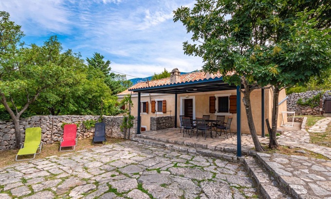Single-family house "Tomiceva". 22 km from the centre of Senj, 4 km from the centre of Donja Klada, 14 km from the centre of Sv. Juraj, in a secluded position, 3.5 km from the sea, 4 km from the beach. Private: property 2'000 m2 (fenced) with lawn and wildlife garden. Outdoor shower, hot tub, barbecue. In the house: internet access, washing machine. Motor access to the house (80 m via unmade road). Parking (for 4 cars) on the premises. Shop 14 km, restaurant 14 km, bus stop 1 km, pebble beach 4 km. The owner does not accept any youth groups.