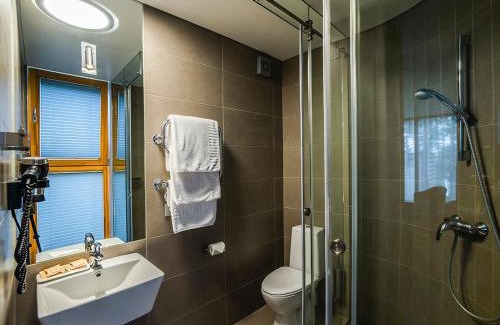 Located in Anupriškes, TonyResort is on the shore of Lake Gilušis. It offers air-conditioned rooms with free Wi-Fi. It has a private beach area and a tennis court that can be used for free between 8 and 10 am. It also offers horse riding activities . The rooms of the TonyResort are bright and elegant. All feature views of pine forest and a private bathroom. Some rooms have a terrace and a flat-screen TV with satellite channels. The resort offers such outdoor activities as fishing, water sports, a ropes course and cycling. A volleyball court is also available. Apart from that, guests can enjoy the sauna and the hot tub. The resort has a spacious restaurant that serves European cuisine and grilled dishes, including fresh trout caught in the nearby lake. In the mornings breakfast is available. Located in a quiet location, TonyResort offers you a chance to relax away from the rush of city life. The nearest city is Trakai, 5.6 mi away.