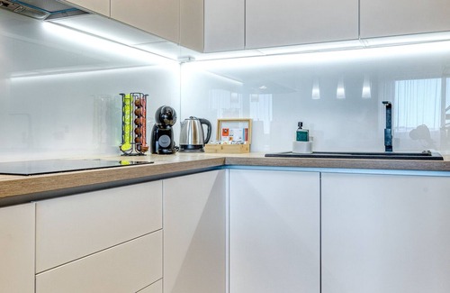 Even though the place is located in the center, it is very quiet. In the apartment you will find beautiful bedroom with king size bed, living room with sofa bed connected to kitchen with dining table, bathroom with bathtub and last but not least, amazing view 🤩