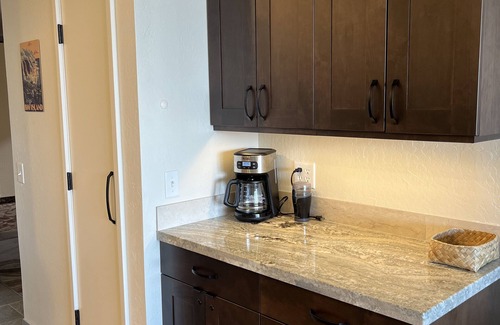 Welcome to The Coral Suite at Kona Pacific! Our beautiful, clean, ocean view unit is just the spot to come and relax while you are exploring all the wonders of the Big Island. Our condo is a top floor, spacious unit with a huge lanai. Just renovated the 2 bathrooms along with new furniture, carpet, appliances, and art; it is comfortable and inviting. This one bedroom, two bath unit is a very roomy 879 sq. ft. with an additional 190 sq. ft. of living on the lanai where you can enjoy the beautiful views and breezes. There is a washer/dryer in the unit, an air conditioner, ceiling fans, and an elevator close by. The Kona Pacific complex is a very quiet concrete building with well kept grounds that include a pool with adjacent BBQ area complete with picnic tables, loungers, and mini kitchen. We also have a dedicated underground parking spot, but the great thing about Kona Pacific is that it is very conveniently located within easy walking distance to ocean front restaurants, several beaches, and shopping in Kailua-Kona.