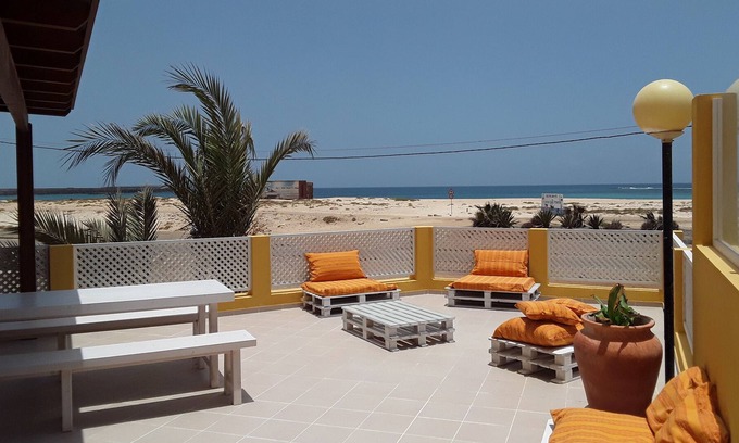 This beautiful gem is fully installed to enjoy a peaceful and well-deserved vacation. Everything is provided with great care and quality material. With 2 terraces, an open kitchen with spacious living room that extend to the 2 bedrooms with fitted wardrobes, each with its own bathroom, you can enjoy your holiday completely separately. The village of Sal Rei with its many shops and colorful restaurants is just a nutshell away. The airport is also only a few minutes further on. (15) At the swimming pool you will be served by a Belgian couple who run the restaurant - bar. Have a nice holiday!!