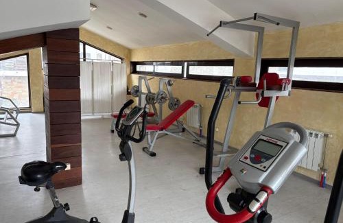 Offering a garden and a bar, Top location ski-in ski-out and Swimming Pool in Bansko is close to Holy Trinity Church and Bansko Municipality. This property offers access to a terrace and free private parking. The accommodation features an elevator, full-day security, and currency exchange for guests. With free Wifi, this 2-bedroom apartment offers a satellite flat-screen TV and a kitchen with an oven and microwave. Guests can take in the views of the mountain from the balcony, which also has outdoor furniture. The apartment offers bed linen, towels, and ironing service. Guests may eat at the on-site family-friendly restaurant, which is open for dinner, lunch, brunch, and cocktails. The apartment also provides an indoor pool and a sauna for guests to relax in. Sightseeing tours are available in the surrounding area. Skiing and walking tours can be enjoyed nearby, while a ski equipment rental service, ski-to-door access and a ski pass sales point, are also available on-site. Holy Virgin Church is 1.4 miles from Top location ski-in ski-out and Swimming Pool, while Vihren Peak is 9.1 miles from the property. Sofia Airport is 104 miles away, and the property offers a paid airport shuttle service.