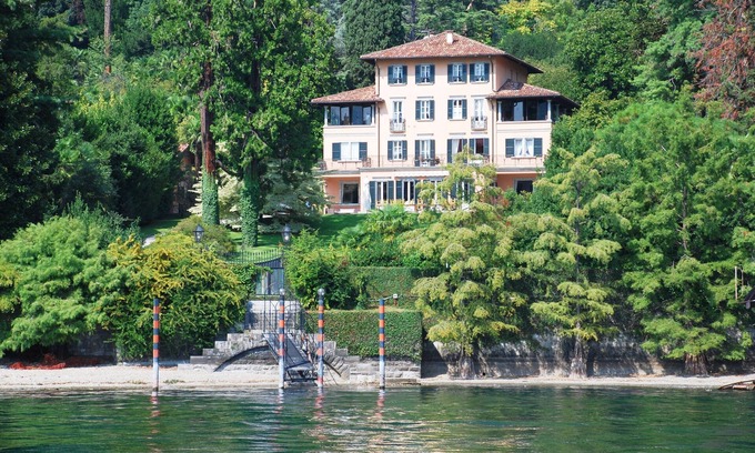Outside, the private park (30.000 m²) comprises a marvellous green lawn with panoramic views across the lake, heated swimming pool with sun loungers, toys for children, hot shower and dressing room. Tennis court. The grounds support ancient sequoia, cedar, oak, and palm trees. There is an antique cellar with a selection of Italian and international wines. Private mooring available on request.