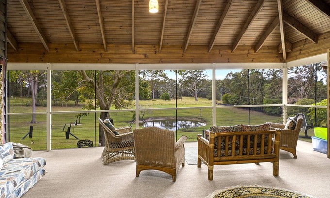 IDEAL WINTER GETAWAY -FARM & WALK TO BEACH GETAWAY! ENJOY A LONGER STAY AT A REDUCED PRICE! Welcome to ‘Ann's Coastal Chalet’. Set on 5 scenic acres offering a one-of-a-kind, hands-on farm experience. Slow combustion fire indoors and fire pit outdoors for your winter escape! Halfway between Sydney & Brisbane (only 5 minutes off hwy) in a peaceful, quiet location for ideal for couples or small families seeking an idyllic rural retreat amongst gum trees with ocean breezes. Only a short stroll to miles of deserted ocean beach accessed by a child friendly lagoon.