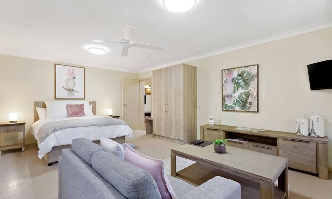 The Tallowood is a newly completed spacious east-facing apartment, that includes a comfortable Queen Bed made up with luxurious 100% Organic Cotton sheets, kitchen facilities with an induction cooker and microwave, a large living area with two -seater couch, Smart TV, and a generous ensuite bathroom with hairdryer. We also provide unlimited Wifi and reverse cycle air-conditioning.