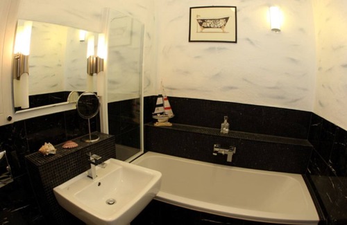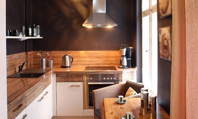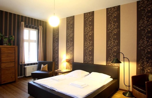 Very well kept equipment with a high-quality furniture was. The very spacious apartment has parquet floors and is furnished with dark woods and high windows. A color-coordinated and successful combination of the walls provide a pleasant atmosphere. DSL Internet, flat screen TV and an iPod docking station are available.