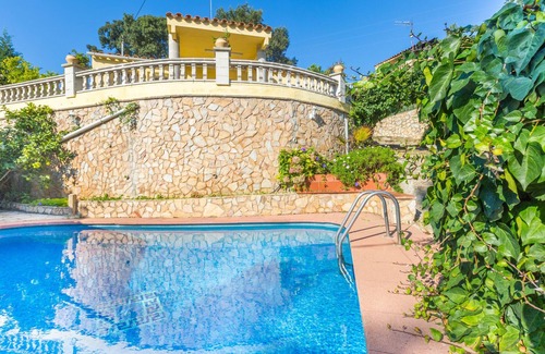 Villa Tordera 22 is a 4 bedroom property located in a quiet area only 7km from the center of Lloret de Mar, one of the hot spots of Costa Brava, where you can find restaurants, supermarkets, bars... and surrounded by stunning beaches. ¡Ideal for a relaxing vacation in Costa Brava with family, it includes everything that you need to feel at home! It can accommodate up to 8 guests. The house has a small apartment with a double bedroom (double bed) and a bathroom (bathtub) just next to the main house with a separate entrance. You will find 3 double bedrooms in the main house (1 double bed, 4 single beds), 1 bathroom with bathtub, living room (TV, satellite, fireplace), equipped kitchen (oven, microwave). The exterior has a large terrace with barbecue, as well as a heart shaped private pool (7x3.5) in the entrance area.