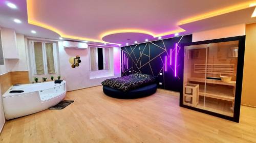 A recently renovated bed and breakfast, Torino d'Amare Suite offers accommodations in Turin. This property offers access to a balcony, free private parking, and free Wifi. Guests have access to a sauna and hot tub. This air-conditioned bed and breakfast comes with a fully equipped kitchen, a seating area, a dining area, and a cable flat-screen TV. A private entrance leads guests into the bed and breakfast, where they can enjoy some wine or champagne and chocolates or cookies. The accommodation is non-smoking. Allianz Stadium is 1.6 miles from the bed and breakfast, while Porta Susa Train Station is 2.4 miles from the property. Torino Airport is 9.3 miles away.