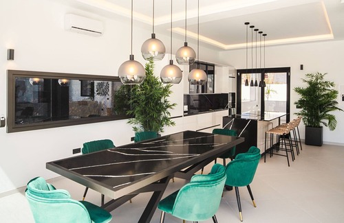 The heart of the villa lies in its open-plan kitchen, fully equipped with state-of-the-art appliances and sleek countertops, creating a culinary haven for aspiring chefs and gourmands alike. As you prepare delectable meals, the seamless flow between the dining and living areas fosters a sense of togetherness and conviviality.