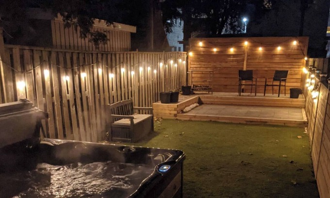 Welcome to Queen & Coxwell - quite literally the dividing line between two of Toronto’s nicest neighbourhoods, Leslieville and the Beaches, only minutes from Ashbridges Bay, and across the street from Drake’s new music venue, History. This 2-bedroom home is more than 160 years old, with original wainscoting and authentic tin textured walls and ceilings, along with freshly renovated fixtures, kitchen, bath and fun decor, offering the ideal balance of vintage charm and modern aesthetic. The home also comes with a private fenced-in backyard, complete with outdoor dining table, grill, lawn chairs, and jacuzzi hot tub.