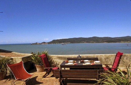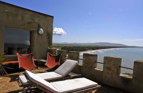 As the centuries have passed and the Torre has been restored, it has become a special place to spend your holidays. The location, as is for all towers on the sea, is absolutely spectacular. The tower rises above the Gulf of Talamone, the Tuscan coast and the Park of Maremma and on clear days, usual in this part of Tuscany, the view stretches for kilometers. Behind the tower lies the Maremma, rich in woods and scattered with numerous villages of Etruscan origin, the traces of which still remain today. The charm of this place is such that in the past, part of a James Bond movie was filmed here. The tower is part of a large estate that also includes another smaller structure, with which you share only the access to the sea with steps carved into the rock and a with a sunbathing platform. At the foot of the Tower, facing the sea, there are two terraces: on one you will find the swimming pool (6x4,1.40 m deep) (31/05-26/10) and surrounded by a wooden deck, while the other terrace, which is nicely furnished with sofas and chairs, offers a splendid view that reaches its best at sunset. This accommodation invites idleness and to finish the day you can go to the picturesque village of Talamone, which you have had in front of you all day, to enjoy the delicious Maremma cuisine or fish dishes. Wi-Fi Internet connection, welcome drink, courtesy set in the bathrooms and maid service for 5 days/week (excluding cleaning of the kitchen) are included in the price (only for weekly rentals). Services on request and to be paid for on location: extra hours of maid service, babysitter, a chef, cooking classes.