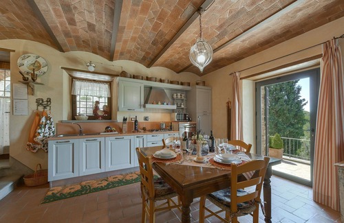 The house sits in a peaceful hamlet and provides an authentic Tuscan atmosphere. The terraced garden includes a covered dining area and several outdoor seating areas , making it perfect for relaxing and enjoying the view.