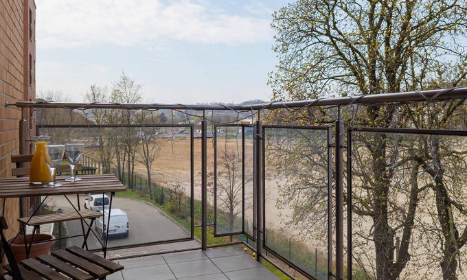 The carefully designed interior of the apartment is suitable for a stay of 5 people. The apartment consists of a spacious living room with a kitchenette, a bedroom, a balcony and a bathroom with a bath. The living area with a comfortable sofa and TV is the perfect place to relax and unwind. The apartment has a desk, ideal for remote working. The kitchenette is fully equipped, including a microwave and coffee maker. The apartment has a spacious balcony with garden furniture where you can enjoy your morning coffee with a beautiful view or relax in the fresh air after a busy day. Panoramic balcony doors fill the space with natural light, giving the interior a bright feel. Multimedia includes complimentary Wi-Fi and two flat-screen TVs with access to cable channels. Complimentary toiletries, towels and bed linen are provided to ensure a good start to every stay. The apartment also has its own parking spaces in the garage and in the outside car park (an ID badge behind the car window is required), which is particularly useful during the holiday season. The location of the apartment will certainly allow you to feel the atmosphere of the city among the most important monuments.
