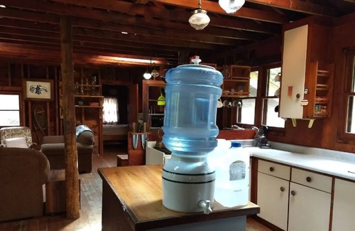 Lock our red gate behind you and drive on the Backwoods Lane a couple km into our Totally Private 20 acre Michabo Lake's 450 acre off grid escape. There are no other cottages. Gravity water feeds the SUMMER ONLY outside shower & tub plus the kitchen. No electricity.