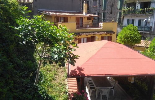 The house is part of the private accommodation leased for tourism purposes, is a two-storey villa with private garden, is located in the center of the village of Monte Compatri, close to the shops and the town promenade. The structure is as follows: on the first floor: a small living room with table, sofa and TV, kitchen with fireplace, a double bedroom and a bathroom with tub and washing machine; to access the upper floor from the inside we have a small spiral staircase, or outside a larger staircase for climbing with luggage and also serves as an emergency exit. Here we have an attic room with a double bed, a single bed, a bathroom with shower and a terrace. Outside a private garden with wooden gazebo, garden table and brick barbecue.