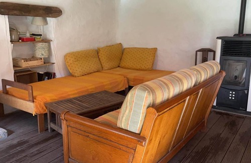 On the ground floor, near the window, a small fireplace revives the cooler evenings and a stove ensures warm well-being. The kitchen is complete: fridge, oven, gas stove, kitchen utensils, enough to provide excellent meals to enjoy with friends on the large dining table!