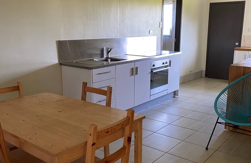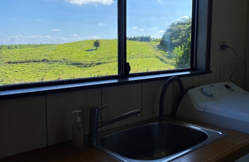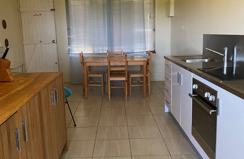 The cottage has one ensuite bedroom, and a separate room with kitchen, laundry and dining. There is undercover parking. Internet reception is intermittent.