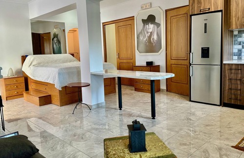 The apartment has 1 Queen size bed, a walk-in closet with a clothes rack and shelf for organizing luggage, a sofa that turns into a double bed a living room, a bathroom, and a kitchen. A terrace with outdoor furniture, full air conditioning, heating, a smart TV, fast free wifi, and a parking space.