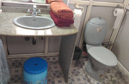 Additionally, there is a shower room (containing a sink + shower) again reserved solely for guest use, and a toilet (containing a sink + toilet), which is shared. Both the shower room and toilet are accessible from the kitchen area. Note additionally that the shower in the shower room is not enclosed - this is quite common in India.