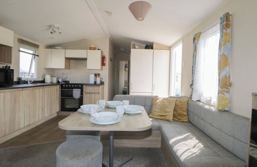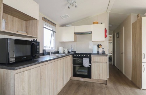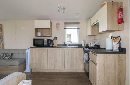 Tower View Number 34, consists of a open-plan living space with kitchen with gas oven, grill and hob, combi microwave/oven, fridge/freezer, coffee filter, kettle, and toaster, a dining area with seating and sitting area with Smart TV and gas fire. The bedrooms consist of a double, and two twins serviced by a shower room with walk-in shower and basin and cloakroom with basin and WC. Outside there is a non enclosed side garden with lawn, patio, furniture, barbecue, off-road parking for 1 car and a swimming pool and restaurant onsite. Within 0.7 miles, you will find a shop, within 0.6, a pub, and within 0.8 miles a beach. Please note that this is a non-smoking property and no pets allowed. WiFi, fuel, power, bed linen and towels are all included in the price. Tower View Number 34, a lovely base for your coastal escape. Note: There are two steps up to the property. Note: There is a sofa bed for flexible sleeping arrangements only. Note: There are day passes available for purchase for the swimming pool.