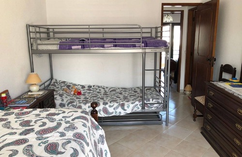Townhouse with typical architecture of southern Portugal in a small seaside resort with a family atmosphere. You will find all the amenities (bars, restaurants, shops and market ...) The beach is less than 10 minutes' walk away. It is a terraced house composed of three bedrooms, two upstairs, a fully equipped kitchen, a living room, a bathroom (with bath) and a shower room ( with sweet). The bedrooms and the living room are equipped with reversible air conditioners. On the back of the house, the interior courtyard and its barbecue are ideal for dining.