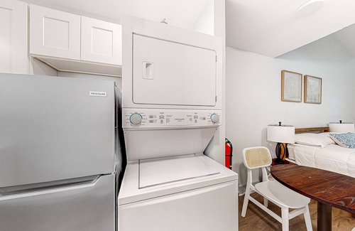 Upon entering, you will encounter a studio-like floor plan with a comfortable bed, a sofa bed, a smart TV with streaming services and high-speed WiFi to keep you entertained during your stay, a stacked washer/dryer to make laundry a breeze, and a well-appointed full kitchen complete with all the essentials to prepare exquisite culinary masterpieces and beach snacks on the go.