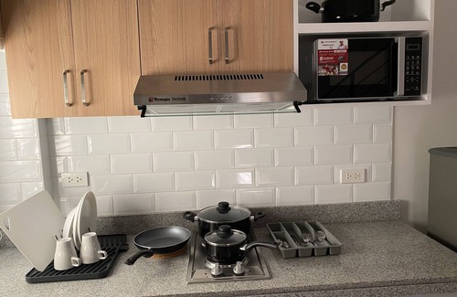 This two bedroom townhome is located at Balibago, Angeles city. It is equipped with wifi connection and it has an area that you can use to work from home.