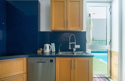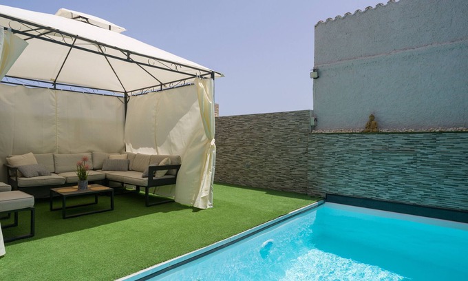 This bright terraced house in Telde, Gran Canaria, is the perfect place for unforgettable holidays. With an area of 112 m², tastefully decorated and fully equipped, it offers capacity for up to seven people.The property has three spacious bedrooms, a cosy living room and an independent kitchen with everything necessary to enjoy a comfortable stay. Outside, you will find a spectacular 87 m² terrace, garden and private pool with jacuzzi area and waterfall, perfect spaces to relax under the Canarian sun and share moments with family or friends.The location is privileged, right in front of Playa del Hombre and the famous bufadero of La Garita. The accommodation is less than a kilometre from La Rubia, a recognised typical Canarian restaurant on the beachfront. Additionally, the accommodation is 13 kilometres from the city of Las Palmas, 19 kilometres from the Insular University Hospital, 20 kilometres from Gran Canaria International Airport and 42 kilometres from Maspalomas Golf Course.The accommodation has all modern amenities. It is equipped with air conditioning, two fans, WiFi internet access, washing machine, iron, hairdryer and televisions. It also has a garage in the same building and outdoor furniture to fully enjoy the open spaces.The kitchen, of the vitroceramic type, includes a fridge, microwave, oven, freezer, dishwasher, crockery and cutlery, kitchen utensils, coffee maker and kettle.It is a perfect option for families or groups looking for tranquillity, comfort and a privileged location in the urban centre of Telde, with the sea just a few steps away.