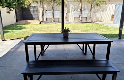 Townhouse on Greybox has been stylishly furnished throughout and features three bedrooms, two modern bathrooms, sleek finishes, quality appliances and the perfect location in Shepparton for you to enjoy a weekend away with friends, an executive mid-week stay or an intimate getaway with that special someone. Located close to Riverside Plaza in Kialla / Shepparton.Comfortable and stylish, this immaculately presented home boasts an enviable position in Shepparton. Large open plan dining, lounge and well-equipped kitchen. Includes coffee machine, air fryer, ice maker, filtered water, dishwasher, gas cook top and electric oven. Full secure yard with outdoor seating. Lock up double garage. The bedding configuration is three queen bedrooms. This property possesses every modern convenience and comfort in the heart of Shepparton and you'll be truly impressed with your choice. Bedroom configuration • Bedroom 1: 1 queen • Bedroom 2: 1 queen • Bedroom 3: 1 queen Ensuite to main bedroom, ceiling fans in all. Split system and ducted heating compliment this inviting home. There is complimentary high speed wifi on offer. Parking is on the driveway with spa.