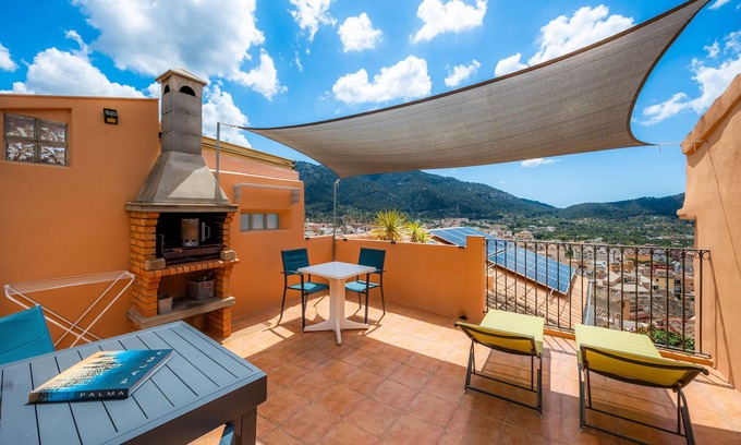 Casa Eliasneil stands in an elevated position in the historical town centre of Andratx. The typical Majorcan vacation home has an air-conditioned living room, a well-equipped kitchen, 2 bedrooms and 2 bathrooms over 3 floors and can accommodate 4 people. Facilities also include Wi-Fi, a high chair (on request) and a cot. The terrace, which affords a wonderful view of the surrounding town, is equipped with a dining table, seating and a barbecue for relaxing in the open air. Restaurants, bars and shopping facilities are a 5-minute walk and the nearest beach Cala en Cranc is around 10 minutes by car.