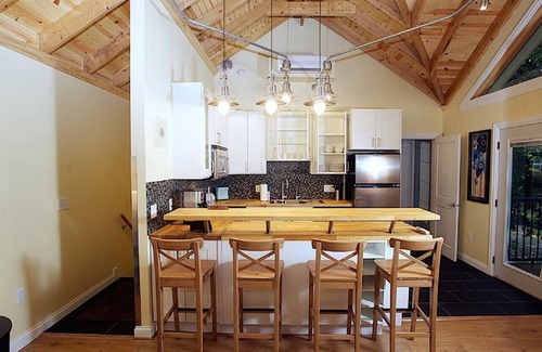 This luxury studio apartment, shaded by large trees, rests above a carriage house that fits the bill with high-quality comfortable furnishings, and peaceful, welcoming vibe. Tradhuset (Swedish for "the treehouse") provides the perfect, centrally-located home base while exploring everything Lindsborg has to offer.