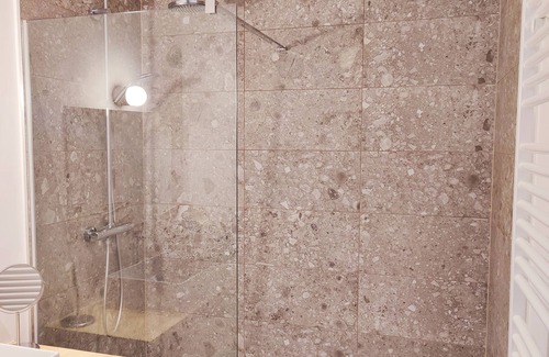 The kitchen is a fully equipped open kitchen : hot plates, oven (conventional & microwave), fridge, dishwasher, Nespresso machine, kettle, bread toaster & all kitchenware & tableware you need to cook. (Oil, Vinegar, Salt, Pepper).